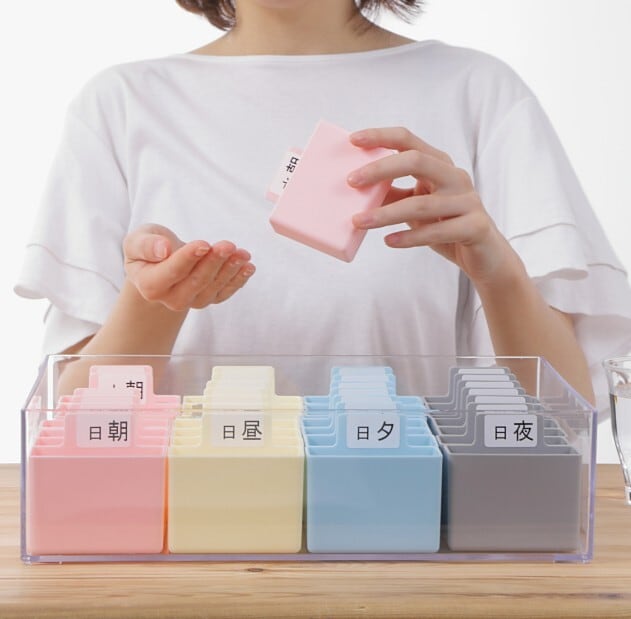 朝・昼・夕・寝る前、それぞれの入れ物が繋がっておらず、個々に取り出せるから非常に便利です。